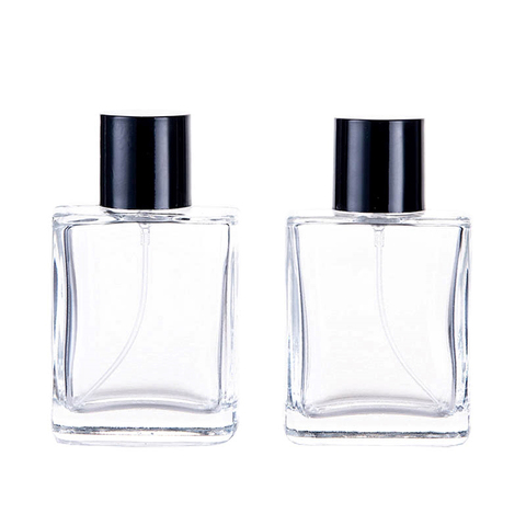 B104-50 프리미엄 50mL 향수 유리 향수병 클리어 빈 리필 골드 실버 스프레이 헤드 캡 포장 카톤
